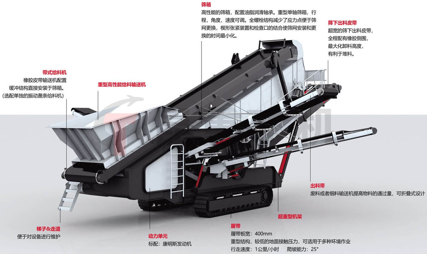 履帶式移動破碎機是昆重礦機為滿足市場需求,自主研發(fā)的全液壓驅動履帶式車用底盤行走的移動破碎篩分設備。履帶式移動破碎機主要用于冶金、化工、建材、水電等經(jīng)常需要搬遷作業(yè)的物料加工,特別是用于高速公路、鐵路、水電工程等流動性石料的作業(yè),用戶可根據(jù)加工原料的種類,規(guī)模和成品物料要求的不同采用多種配置形式。